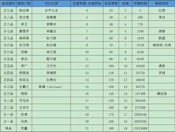 3、最后附带上官品提升攻略图: