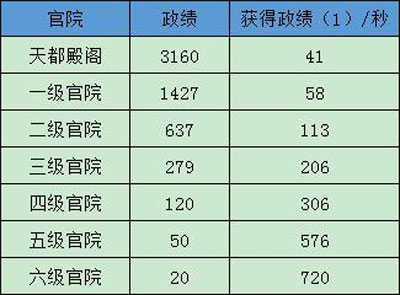 1、政绩,乃提升官品、获得门客、提升俸禄、争逐翰林,京城等的不二法门,2.6版本也是更新了许多了,官官重新整理了政绩的获得方式和一些数据,供各位大人参考,希望大人在游戏的道路上越变越强。