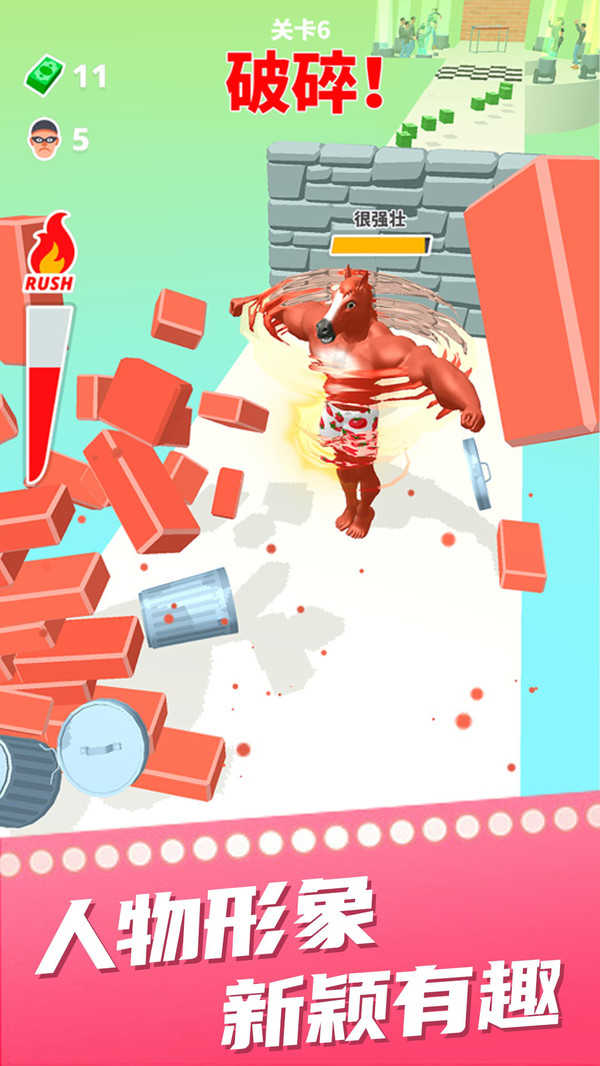 2、强化你的肌肉爆发强大实力,将一切的阻碍都粉碎,并且在游戏中赢得更多的奖励