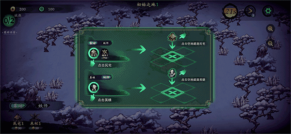 3、英雄放置后在当敌人出现时会自动发出攻击,点击英雄或房屋还可以将它们进行升级,升级还需要消耗灵石,同样可以通过放置灵石来获取