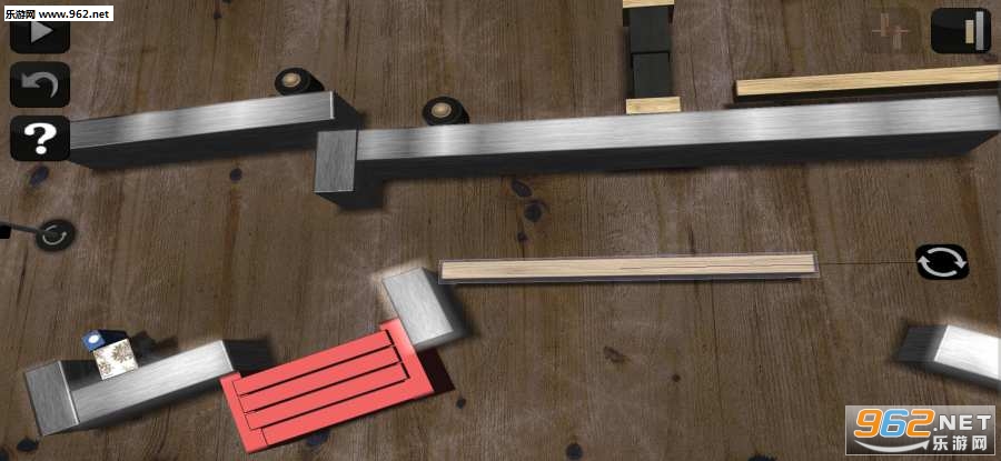 你需要将画面中的各种工具,诸如木头、铁块等等搭建起来,设计出机关,最终使小球到达指定地点。