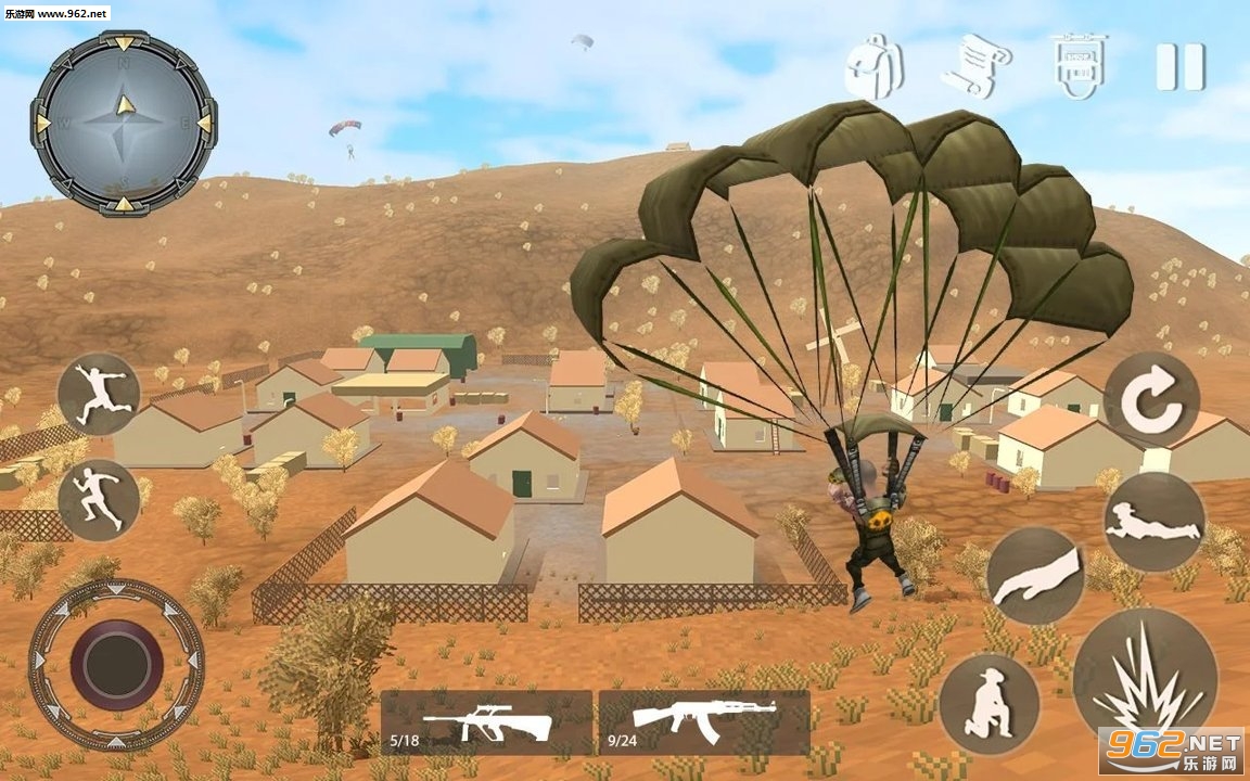 4、使用降落伞跳出并降落在动作填充的竞技场内;