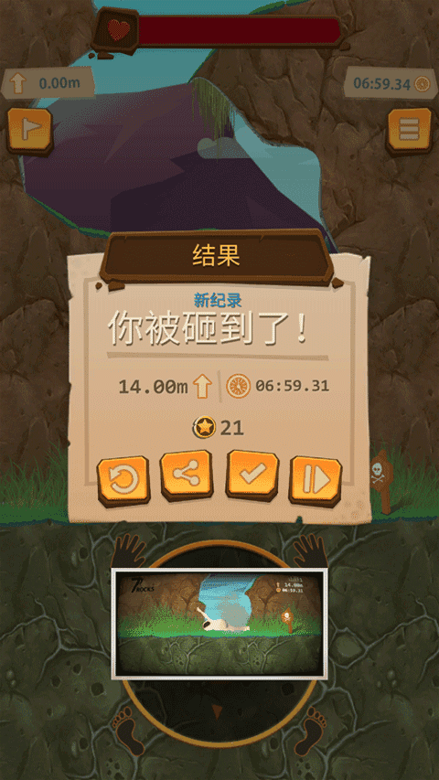 5、被砸中了,游戏就结束了,当然不能放弃继续攀爬,让我们顶峰相见!