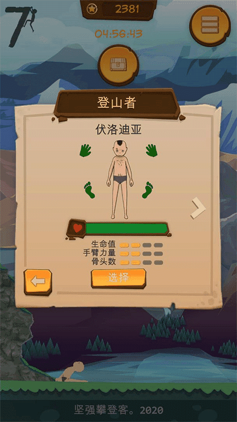 坚强攀登客是一款攀岩类休闲益智游戏,在游戏中玩家将会成为一个攀登客,各种各样的攀登角色,你将通过各种不同的角度进行攀爬,可能爬到一半会不小心掉下来,也可能会重头开始,但不管怎么坚持才是胜利!你所想的爬山,沿着楼梯爬到山顶,在消耗体能和磨炼自己意志力的同时欣赏沿途的风景。