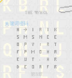 解法:本章增加道具格栅密码,用格栅覆盖便笺可得到字样:A KEY PHRASE:FATHER IS PROUD OF HIM NOT ME。按关键词密码规则只去这一段字的前六位即FATHER即可(E对E孔不能插所以取6位)