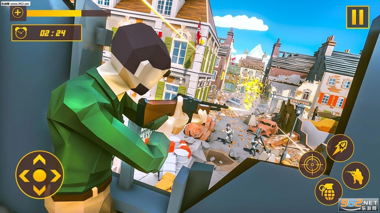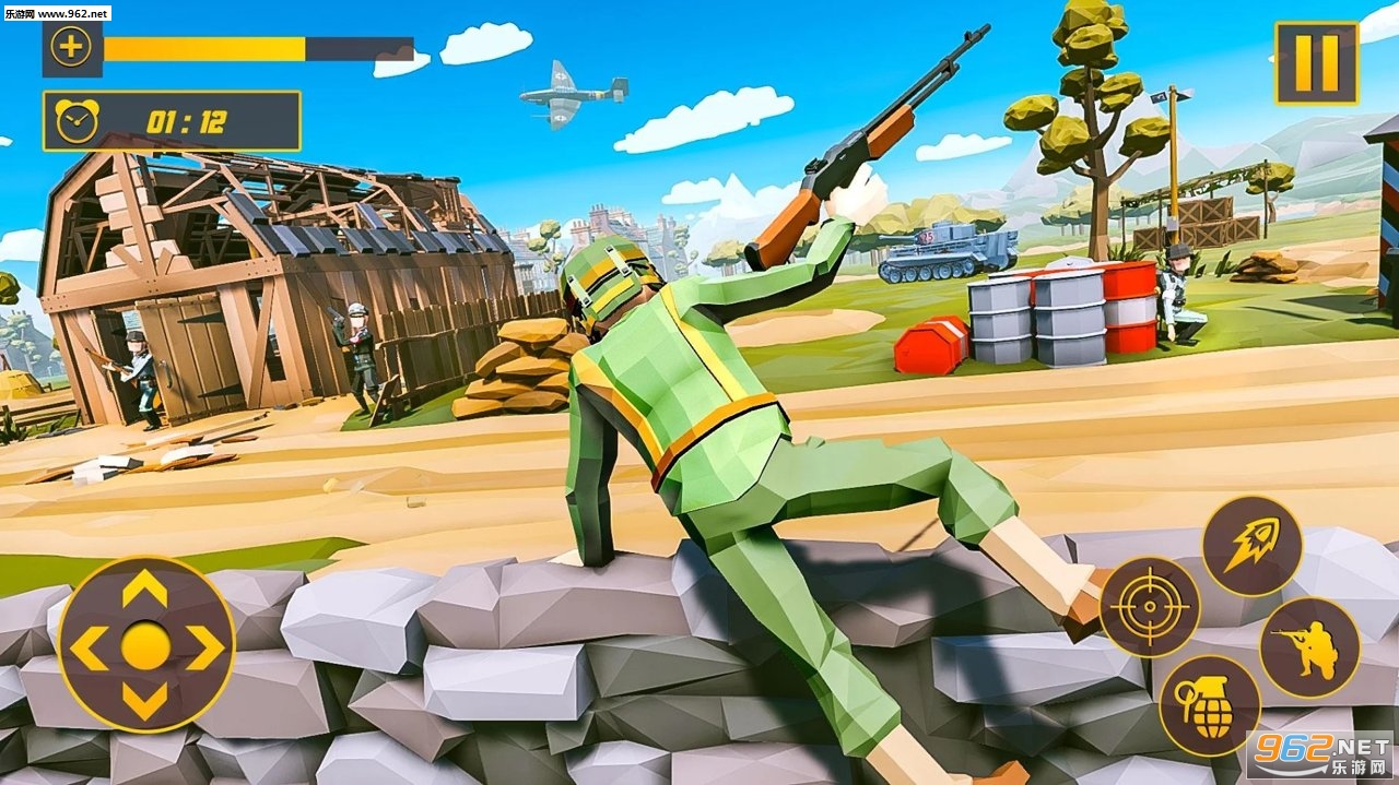 3、使用惊人的超级武器粉碎你的敌人。设置在精美风格的多边形环境中。简化的模型和动画有助于使一切看起来干净清晰。盖住障碍并向敌人投掷手榴弹。