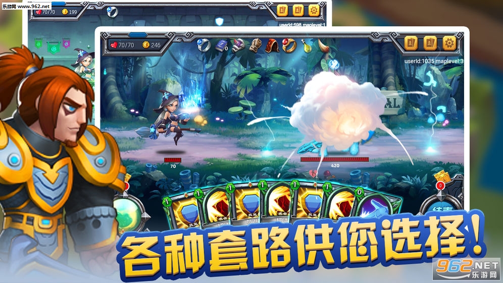 每位英雄都有自己的特性,数百张卡牌供您选择。