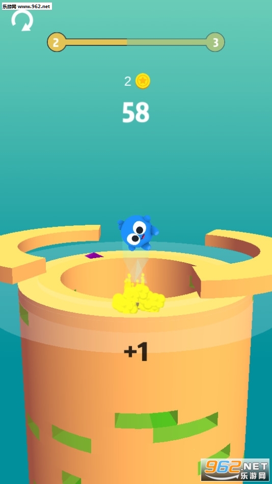 3.单手滑动以旋转塔架,并用球球砸碎地板的薄弱区域,到达跳跳塔的底部;