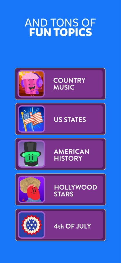 收集角色:通过正确回答这个益智问答游戏中的三个问题来赢得他们,或者挑战你的对手决斗以抢走他们的一个角色!获得全部六个角色即可赢得测验!谁的智商最高?