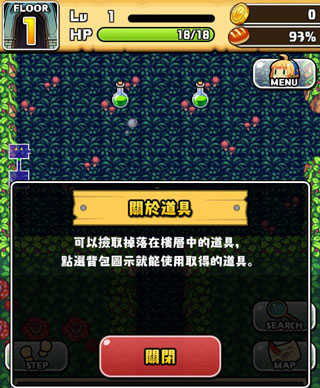 可以捡取掉落在楼层中的道具,点选背包图示就能使用取得的道具,是不是非常简单呢。