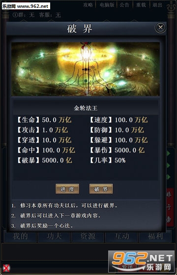 独门秘籍:九阴真经、乾坤大挪移、吸星大法,应有尽有,还可以自创功夫。