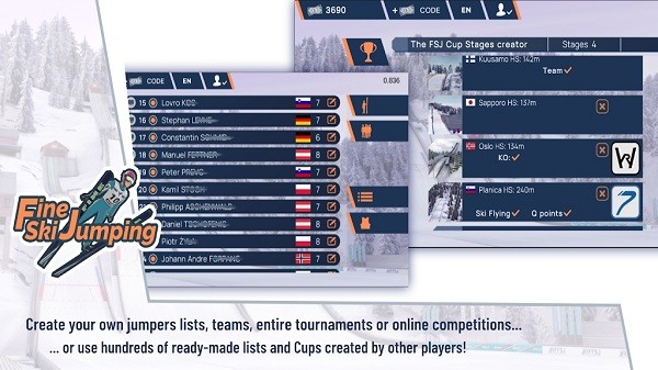 精细跳台滑雪最新版是一款竞技类滑雪游戏,游戏采用高清的画面设计,在游戏中玩家将要在不同的场景中进行滑雪,逼真的游戏场景和音效,给玩家带来沉浸式的游戏体验,让你可以在游戏中尽情的感受滑雪运动的乐趣,感兴趣的朋友快来下载吧!