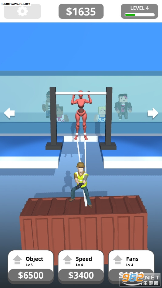 《Andy Lift手游》是一款画面精致的放置休闲手游,游戏中角色不断的做着引体向上,下面随着升级会变换成铁锥、集装箱、船只等众多不同的物体,可以升级增加粉丝的数量提高收益,还可以解锁哑铃、杠铃等道具进行锻炼。