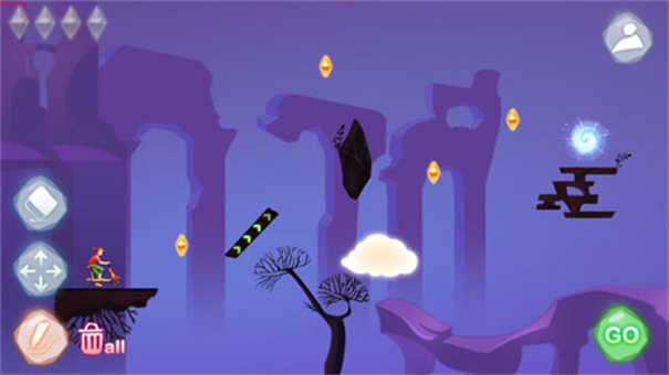 总体来说,游戏自由度颇高,为拓展玩家的思维,通过绘画出合适的路线,驱动单车收集沿途的梦想碎片,奔向远方的世界入口,游戏前期会显得比较的简单,但随着时间的推移和关卡的进行会慢慢变难。在游戏中抵达终点并不是唯一的目的,需要合理躲避以及利用关卡障碍,收集全部星星才能完美过关。