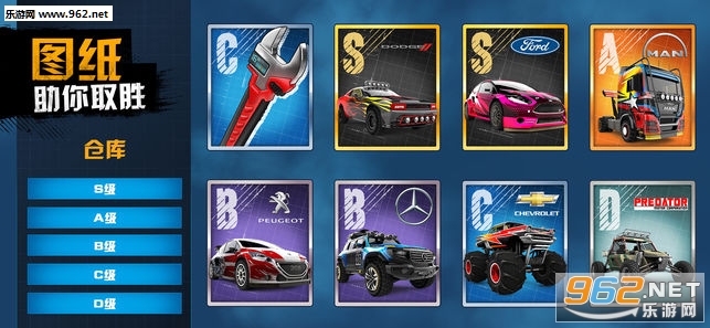 3、收集各种图纸,解锁赛车的装配,自定义改装你的专属赛车。