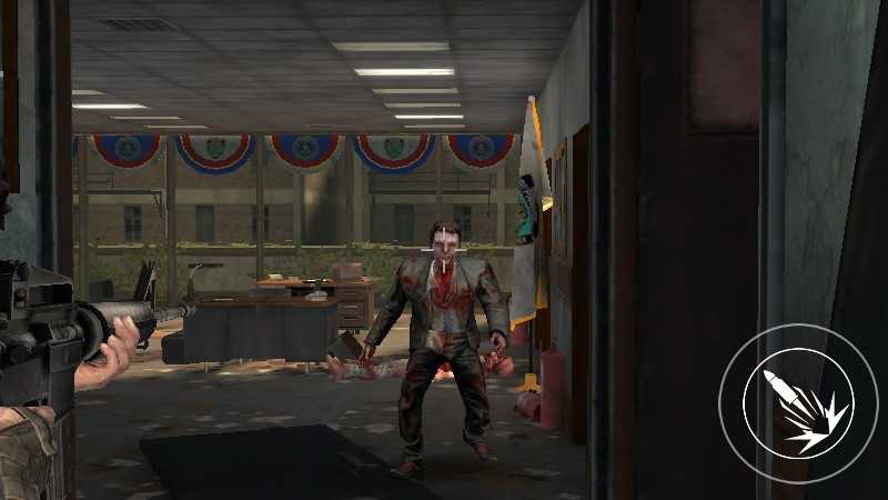 2、看到前方有敌人出现,我们需要将枪瞄准敌人,然后不断点击右下角的【射击】,直到僵尸的生命值为0,不过我们还需要时刻注意左上角自己的生命值。