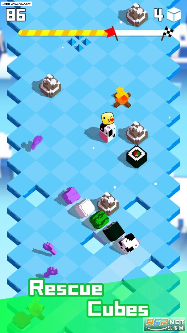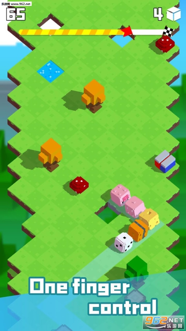 一款画风非常清新可爱的休闲小游戏。控制立方体小动物躲避障碍物,沿途你还可以去拯救其他的小动物。但是你需要灵活走位,不要碰到障碍物了。