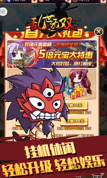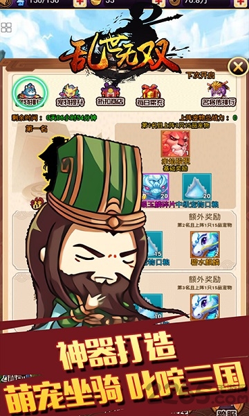 2、角色清新Q萌,场景精致如真;革新挂机回合制玩法,重现三国名将之威,还原历史经典之战。
