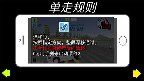5、游戏内还有一些其他的规则需要为各位小伙伴介绍,加速段:尽量以最快的速度通过这样可以获得更高分;漂移段:按照指定方向,整段漂移通过,不允许拉直或者反向漂移;折身段:按照指定方向,你应该在此段内完成一次折身;追走领漂移:做车头时尽量漂移出最好的路线;追走更漂:尽可能的靠近前车,绿圈提示了跟随的最佳位置,模仿前车的运动,但是不要撞击或者超越前车。