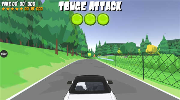 4、接下来为各位小伙伴介绍一下具体的操作,按住屏幕右侧区域是踩油门,按住左下区域踩刹车,左上侧区域是手刹,可以用来启动漂移