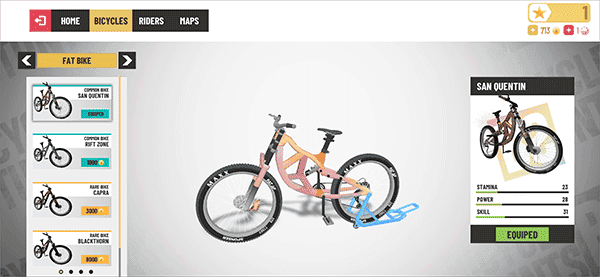 在商城中用金币兑换全新自行车,体验截然不同的性能与风格。