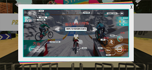 1. 深度特技系统:掌握翻转、后空翻等高难度动作,挑战多样化赛道与任务,持续提升排名与技巧等级。
