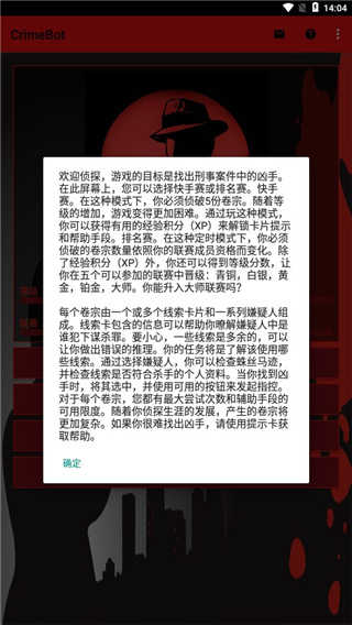 1、在本站下载安装并打开刑侦游戏,进入游戏,玩家需要扮演侦探侦破各种案件,找到凶手,还原事情真相。