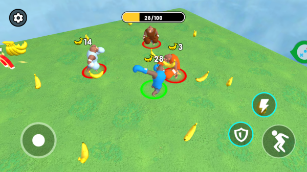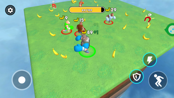 3.需要灵活移动角色,寻找散落在地图上的香蕉,并通过攻击按钮抢夺香蕉。