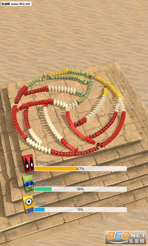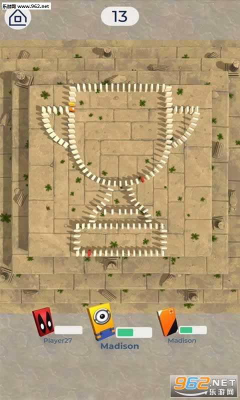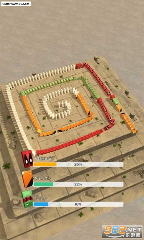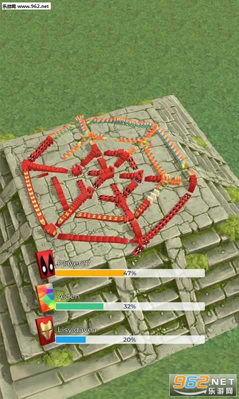 这是一款有趣又兼具挑战性的益智游戏,在游戏中,玩家需要与对手各自选择推倒自己方块的位置,方块会倒下并推倒其他的方块,每个玩家推倒的方块颜色各不相同,看看最后谁推倒的方块比较多吧。