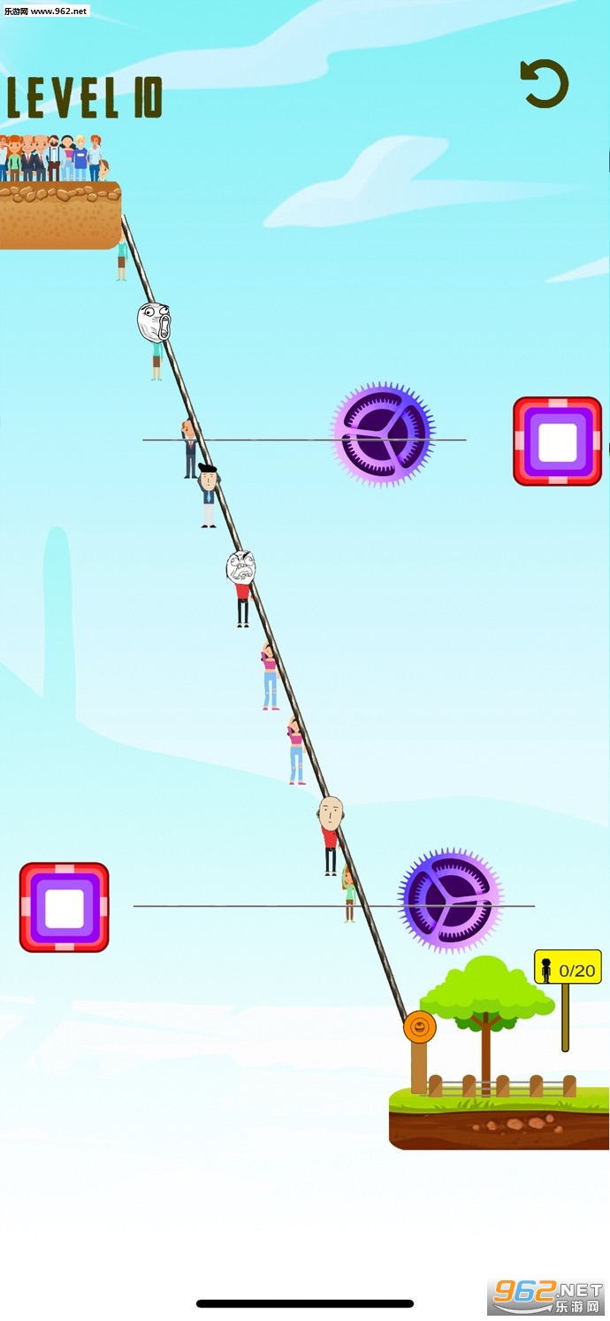 趣味的绳索滑行闯关游戏,游戏的规则简单,避开危险将人群移动到另一个平台即可,当然要小心关卡中出现的锯齿、移动的障碍物等,喜欢的朋友可以下载试试。