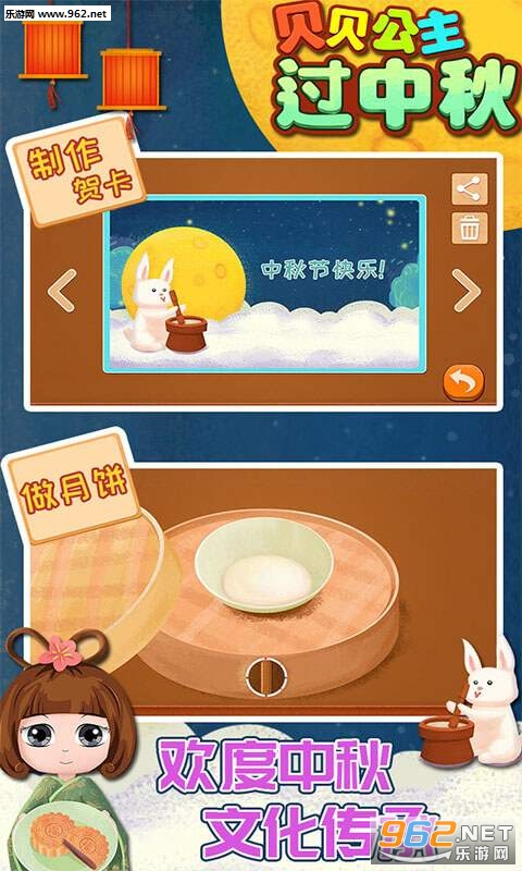 在这里,可以增加小朋友对中秋节的认识,培养情操,增强动手能力,想让小朋友过个开心的中秋节吗,那就赶快到我们的游戏里来体验吧。