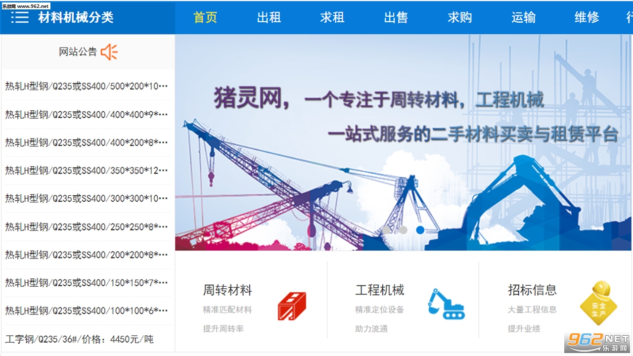 在线可以发布自己拥有的材料资源和机械,可以在此出租或是出售;