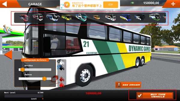 3. 车库中提供多种颜色与型号的巴士,根据你的预算选择心仪车型,点击BUY THIS VEHICLE”完成购买。