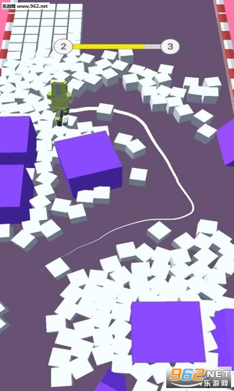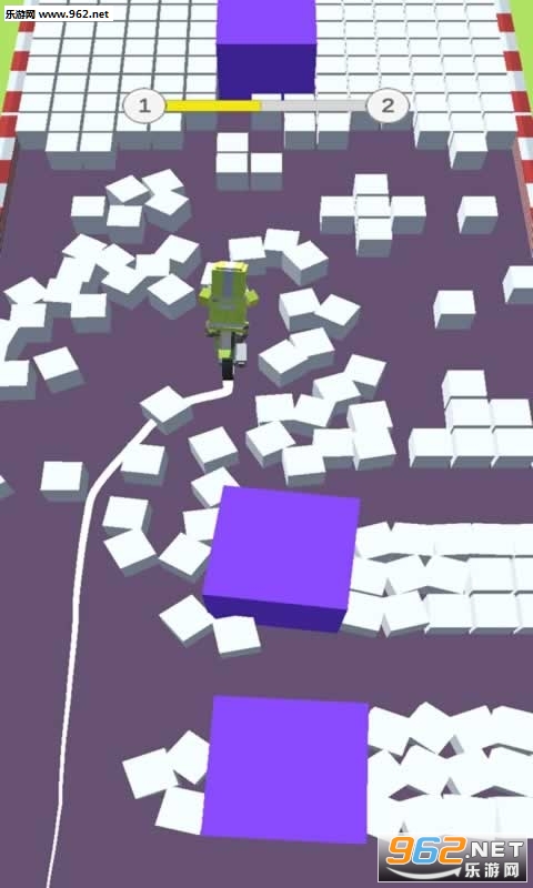 Color Bike Bump这是一款趣味闯关类休闲游戏,玩家在游戏需要控制一个骑着自行车的小人在满是方块的道路上前进,还要时刻留意千万别撞上了紫色障碍物,到达终点即可顺利进入下一关。