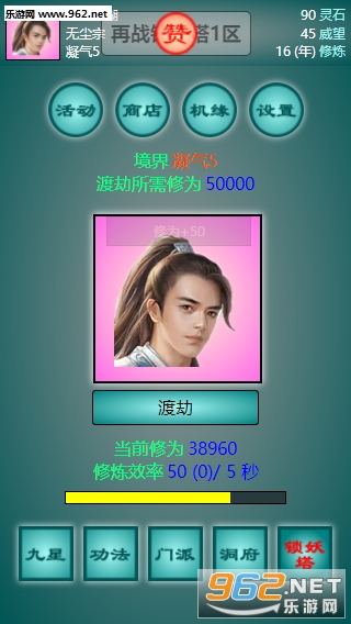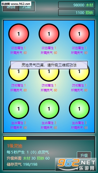 2、九星系统,九星可以用灵池产出的灵气升级,升级可以加三维