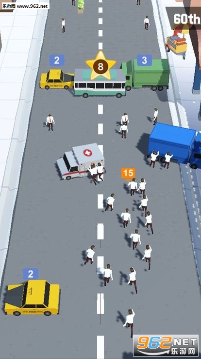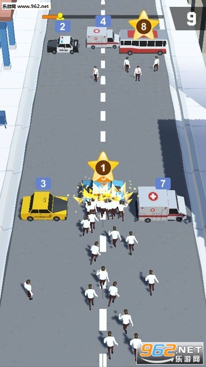 挑战十足的操作模式,控制你的小人开始冲刺,推翻前方所有的汽车障碍物;