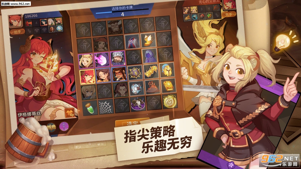 一款非常有趣的卡牌对战游戏,游戏中没有什么娱乐模式,游戏的背景有些怪异,为什么战斗的背景是在旅店。游戏中的玩法还算不错,还加入了一些社交元素,推荐给喜欢卡牌游戏的玩家。