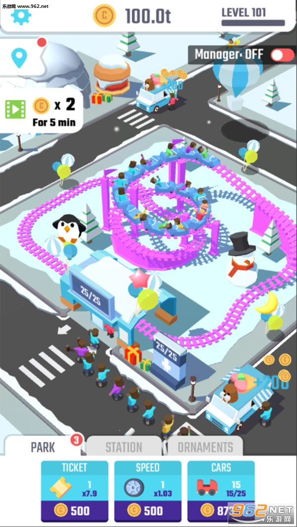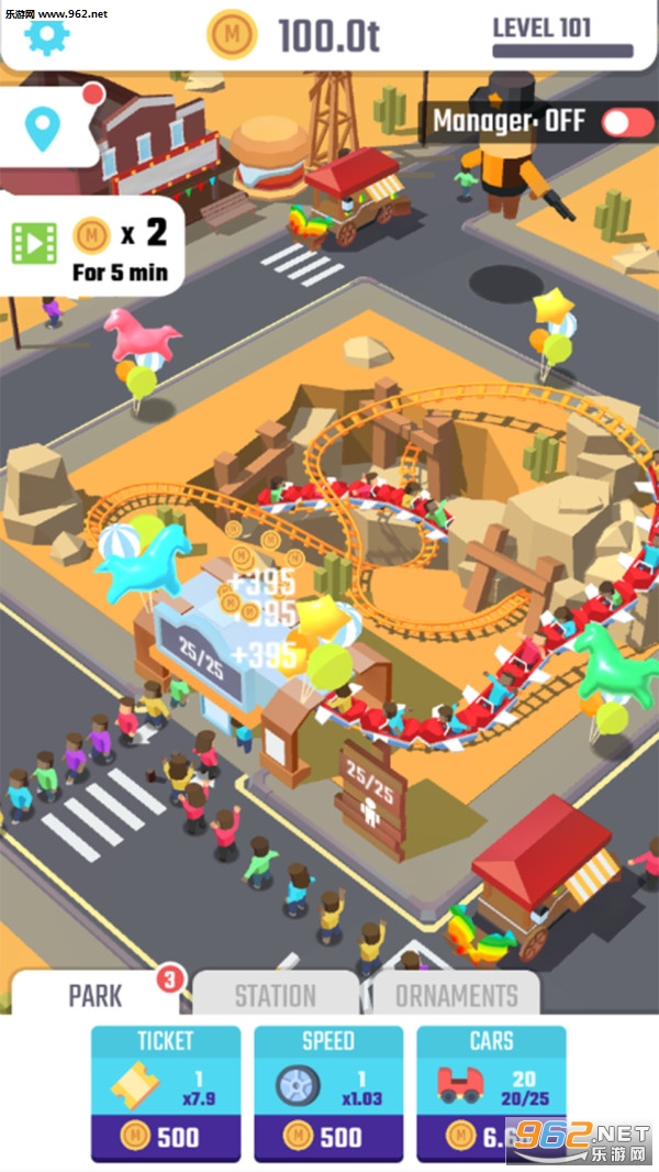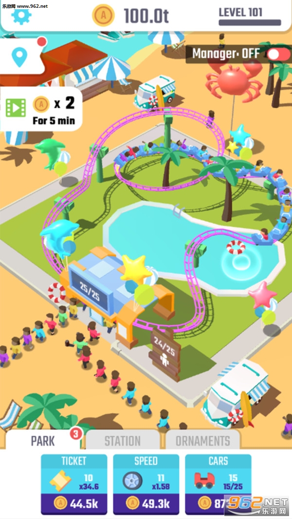3、提升整个游乐场的等级,自然而然的就会吸引更多的游戏,你还可以提升门票的价格哦。