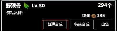 合成方式:3个材料合成一个更品质的材料,合成需要消耗铜币,最高可以使用铜币可最高合到红色,如需要合到紫色,则需要使用天籁石。当然,如果你天籁石足够的话,可以使用特殊合成”直接把普通材料用石头砸到最高品质的颜色。