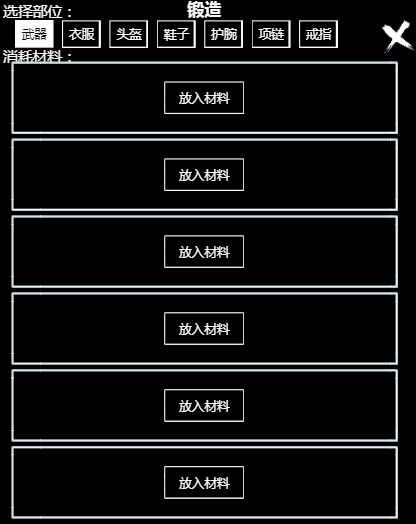 特殊材料:打造装备(特殊材料单独带有属性,每件装备最多只能放入一个特殊材料)、升级灵根。
