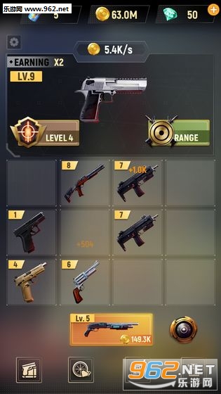 《军火大亨安卓版》是采用的经典休闲风格的放置合成玩法模式设计的射击类游戏,顾名思义玩家在游戏中可以通过合成来获取各种枪支武器,而且还可以不断升级更强力的武器,在游戏中通过这些武器来打靶获取奖励,快来合成出更高级的枪支吧。
