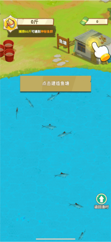 进入游戏后,优先点击发光区域修复小屋——这不仅关乎美观,更直接影响出海捕鱼效率!