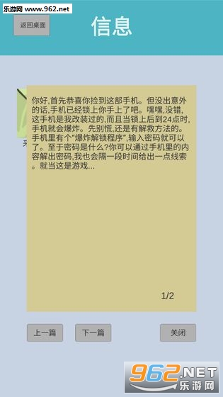 考验玩家推理以及分析能力的一款休闲游戏,玩家需要在规定的时间内对手机内的所有信息进行探索整合,找到拆除炸弹的密码。