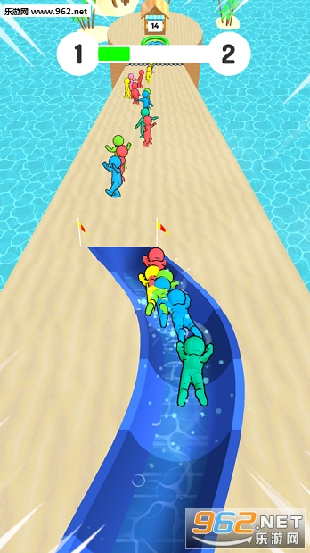 非常有趣的一款滑水类的游戏,玩家能够在游戏的路途中收集更多的人,不断的扩充你的队伍,一起躲避障碍物进行冒险,玩起来很过瘾。