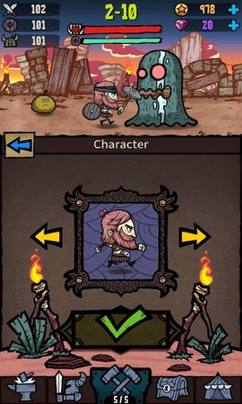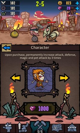 1、 通过手工绘画制作的魅力无穷的游戏画面。简单的操作- 通过合成两个装备来获得更好的装备。