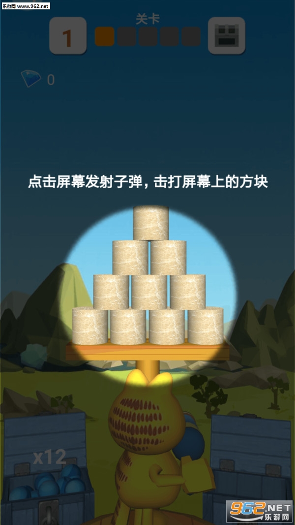 《欢乐加菲猫安卓版》是一款加菲猫主角的休闲手游,玩家在游戏中可以操控加菲猫射击前方的箱子,务必要在限制数量以内完成这任务哦,这很考验你的枪法和眼力哦,需要找准地方哦,快来试试吧!