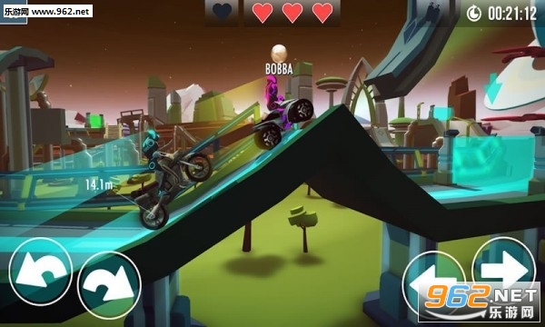 Gravity Rider Zero中的操控简单而精确。在正确的位置加速和倾斜你的摩托车,以更快地越过障碍物。及时刹车以避开陷阱。跳跃后一定要倾斜,以便更早地接触地面并获得更多牵引力。在跳跃之前刹车以将你的滞空时间降到最低,尝试,再尝试。