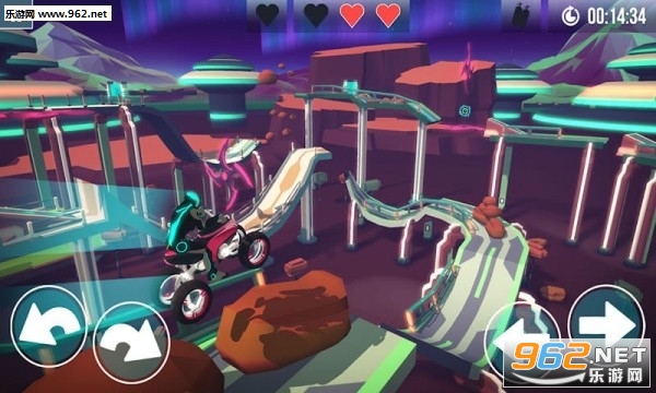 巨大的坡道、激光、尖刺或古老的重力会试图挡住你的路。不过,不用担心,你的车辆拥有完美的速度来通过——只需要一点点技巧,你就不会掉下来。
