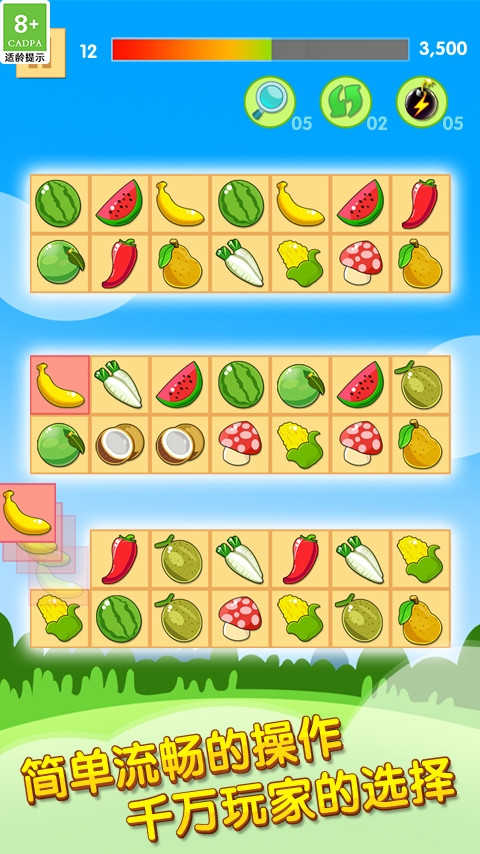 ✨ 缤纷水果,治愈画风:采用高清精致的水果图标与明亮清新的界面设计,营造轻松愉悦的游戏氛围,让人一眼爱上。