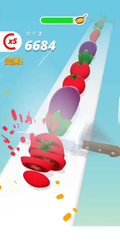 多种缤纷蔬果轮番登场——翠绿的黄瓜、鲜红的番茄、橙黄的胡萝卜……不仅视觉清爽,更带来停不下来的切片快感。每一次滑动都是一场对反应力与节奏感的考验,在轻松氛围中感受持续不断的指尖冒险乐趣。